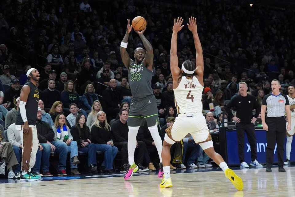 中场休息回来,勇士被限制连续两节单节不足20分,森林狼维持56-40领先,勇士有所追分。麦克丹尼尔斯三分命中维持62-45领先,勇士连追5分,森林狼一波7-0攻势扩大19分优势,勇士一波7-2攻势追分。森林狼继续扩大优势,森林狼单节22-19净胜3分,三节结束森林狼扩大73-57领先勇士。前三节比赛,勇士三分32中7,穆迪10分与波斯特3记三分13分;森林狼三分25中8,兰德尔18+7、戈贝尔12+14、里德12分与海兰德14分。